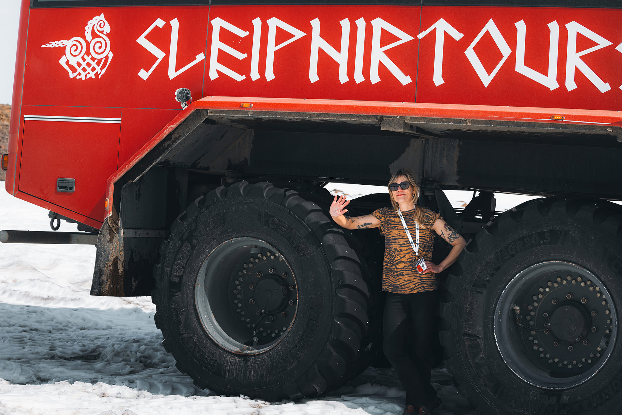 The Sleipnir Transfer Bus is waiting in the Upper Gullfoss parking lot. It’s a white bus marked on the side with “Sleipnir Glacier Tours Transfer.” Please be there 15 minutes before departure.