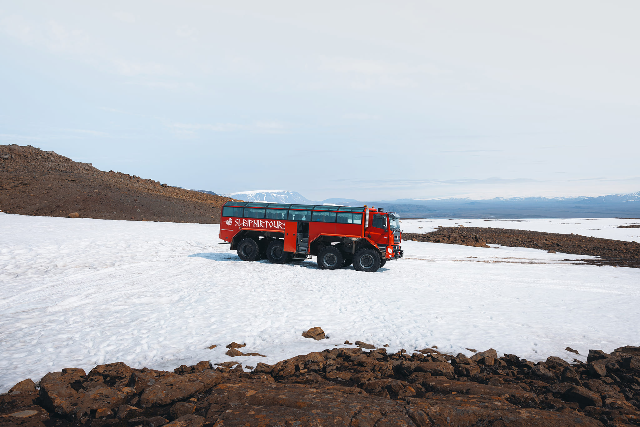 Even when it rains, the glacier and Highlands take on a dramatic beauty that’s well worth the journey. You’ll stay warm and dry inside our comfortable Sleipnir Truck — but you’re free to step outside and explore for as long as you like! We serve the hot cocoa then inside! Having said that, in early autumn (Sep & Oct) the weather might be more challenging, and there are days we need to consider to cancel the tour due to weather.