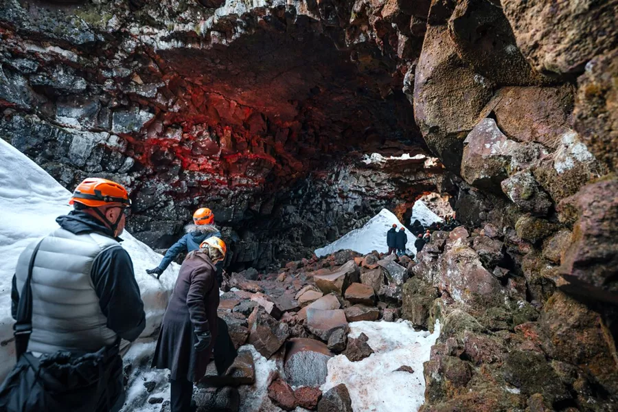 Raufarhólshellir lava tube, situated in one of the most active volcanic areas in the world, is a perfect example of Iceland’s volcanic activity. This uniquely daring adventure will exhibit the Icelandic lava fields from two very different angles, giving you a deep understanding of how Iceland was created and how the primal forces of nature continue to shape it every day! The cave offers easy access, and no climbing or crawling is required.
