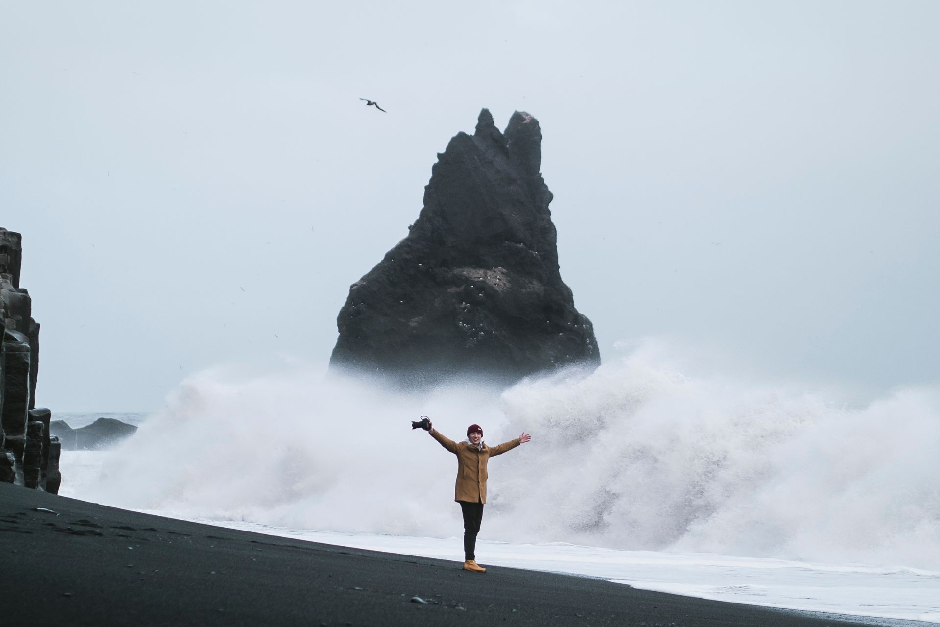 - Reynisfjara / Black Sand Beach – Black-pebble beach, towering basalt columns, and waves with a mind of their own.