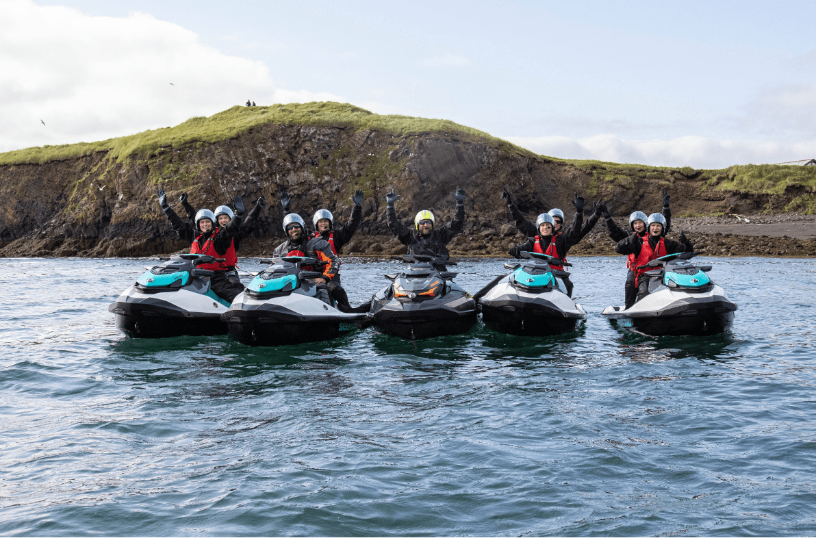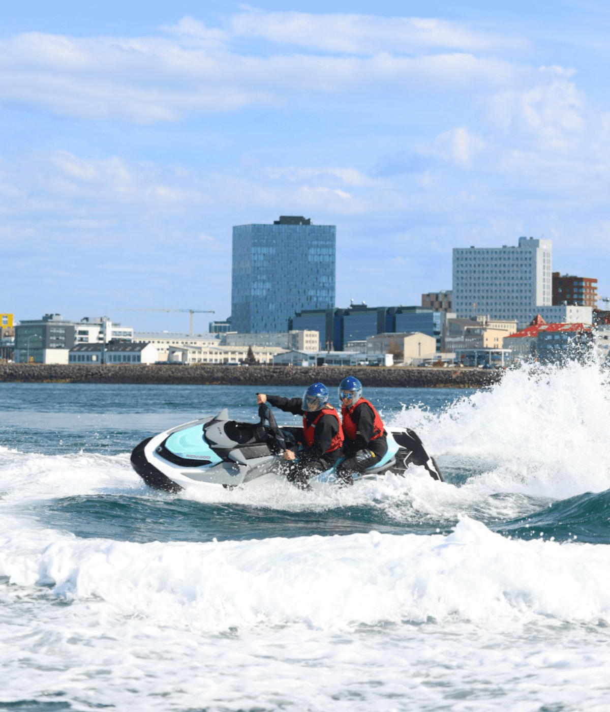 From there, we head out into the bay to explore Reykjavík’s coastline. Along the way we stop at a few great spots where you can catch your breath, enjoy the scenery, and even have some time to just play around on the jet ski in a safe area.