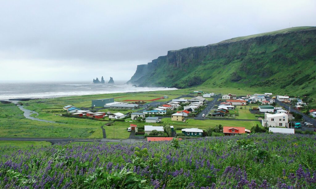 The village is lively, the weather mild, and daylight nearly endless. The green cliffs surrounding Vík are covered in wildflowers. Ideal for sightseeing, photography, and nearby hikes.